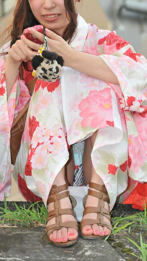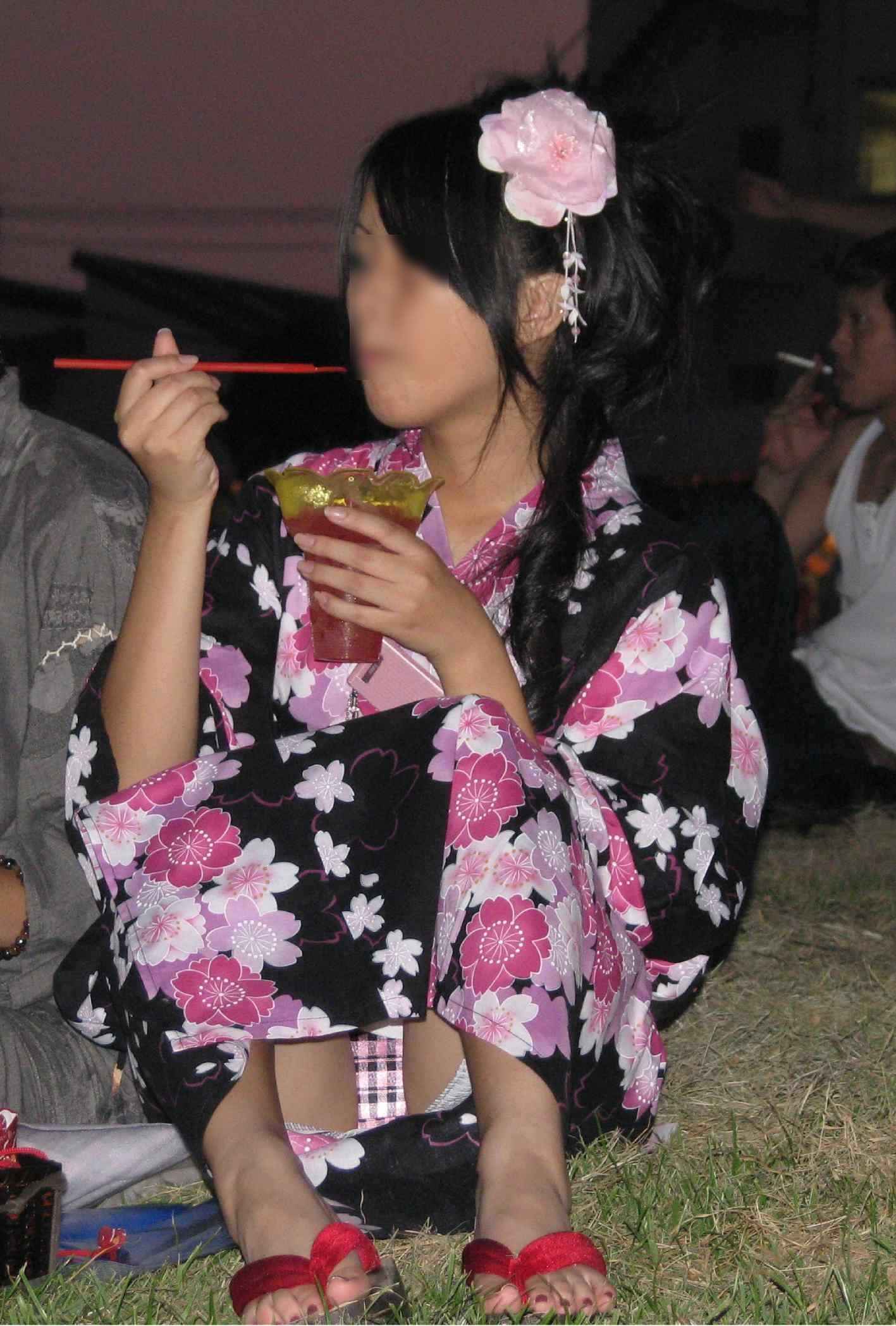 【浴衣パンチラ盗撮エロ画像】夏休みに入れば夏祭りや花火大会で10代女子が慣れない浴衣でパンモロ必須ww
