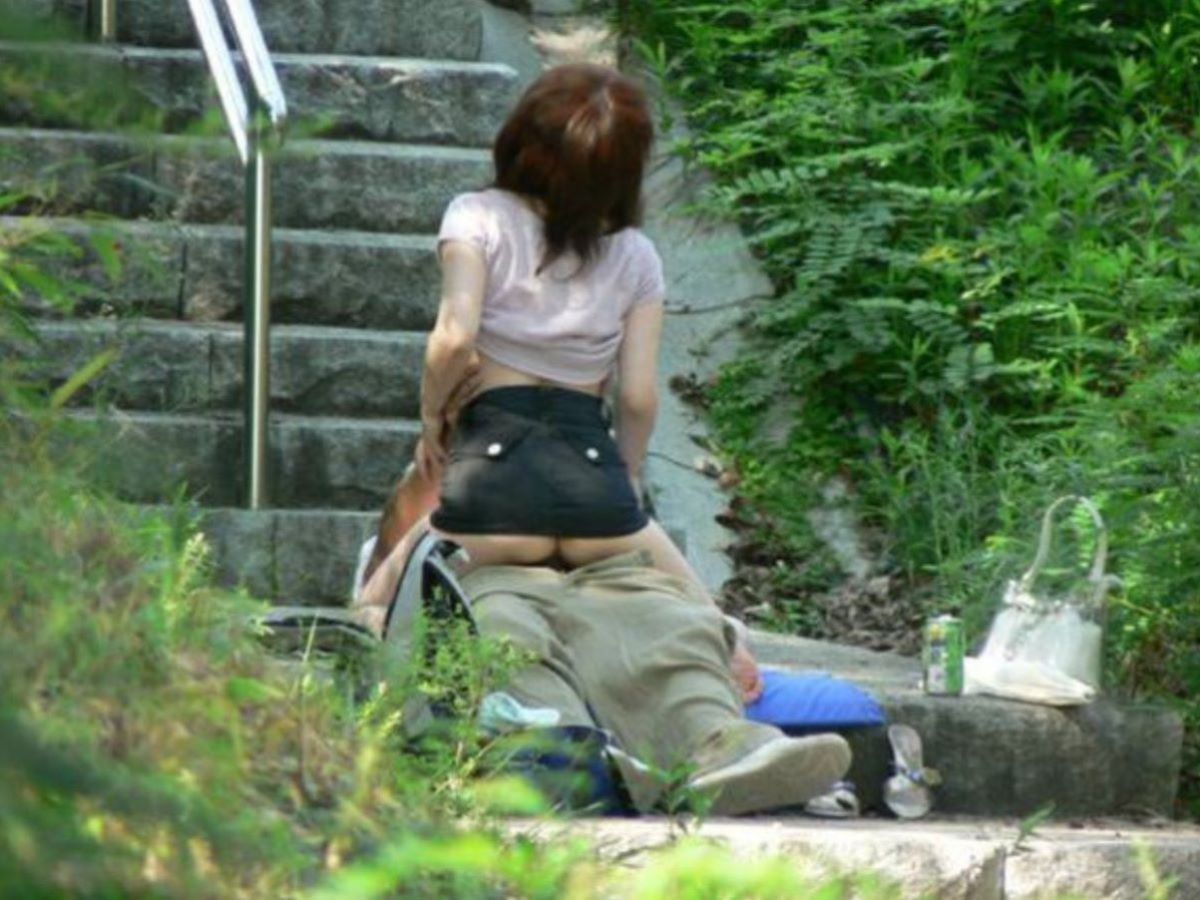 • 少し年齢層が高そうなカップルも階段で騎乗位 青姦_野外セックス_公園_盗撮エロ画像07